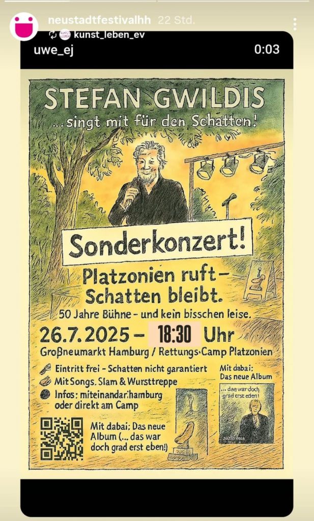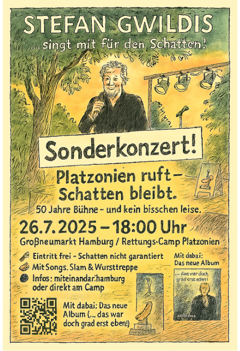 - 16.7., Stefan Gwildis wird mitsingen, für den Schatten, 19:00 Hauptbühne