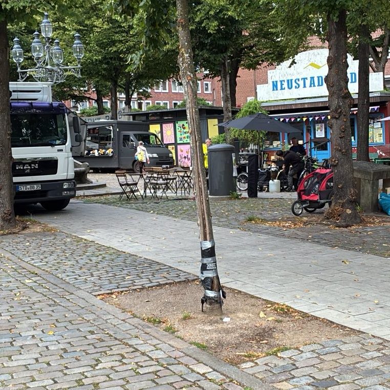 Zweite Rettung. Die Stadt holt den Katalog raus, wir halten den Platz fest. Glattplatten klingen nach Zukunft – aber Zukunft schwitzt. Schatten ist die Währung des Sommers. Kopfstein ist Rhythmus, kein Fehler. Pflanz erst – dann Plan. Bank hin, Rücken zur Baummitte, Blick nach außen: Moin, Nachbar. Die Buden bleiben, weil Erinnerung kein Ersatzteil hat. Pflege ist sexy, wenn der August brennt. Großneumarkt? Kein Make-over. Ein Weiterleben.